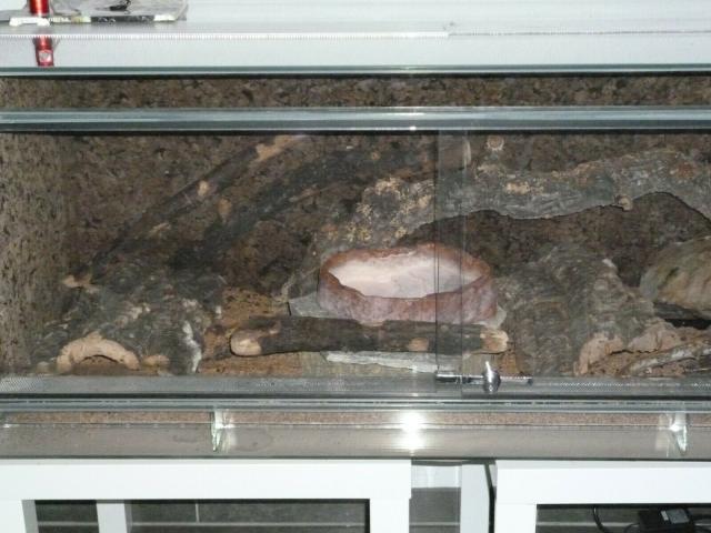 Verkaufe mein 1 Jahr altes Terrarium (Glas) für Schlangen. Das beinhaltet Heizmatte - 45 Watt und ultraflach, das Thermostat (Alarm bei zu niedriger, oder erhöhter Temperatur), das digitale Thermometer (zeigt Temperatur und Luftfeuchtigkeit an), das Schloss mit Schlüssel, die beiden Korkröhren, sowie die Äste, Wassernapf, Bodenkorkstreu und ein rundes Versteck als Schlupfbox gedacht mit Moos. Das Terrarium eignet sich für Königspython, kleinere Boa Arten, sowie für Nattern. Habe auch noch Schlangenhaken und Pinzette.