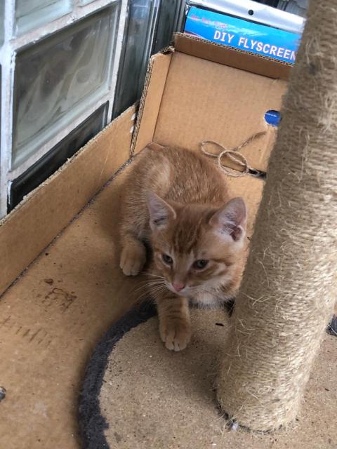 Eine kleine Katze, 14 Wochen alt, männlich sucht ein neues zu Hause . .